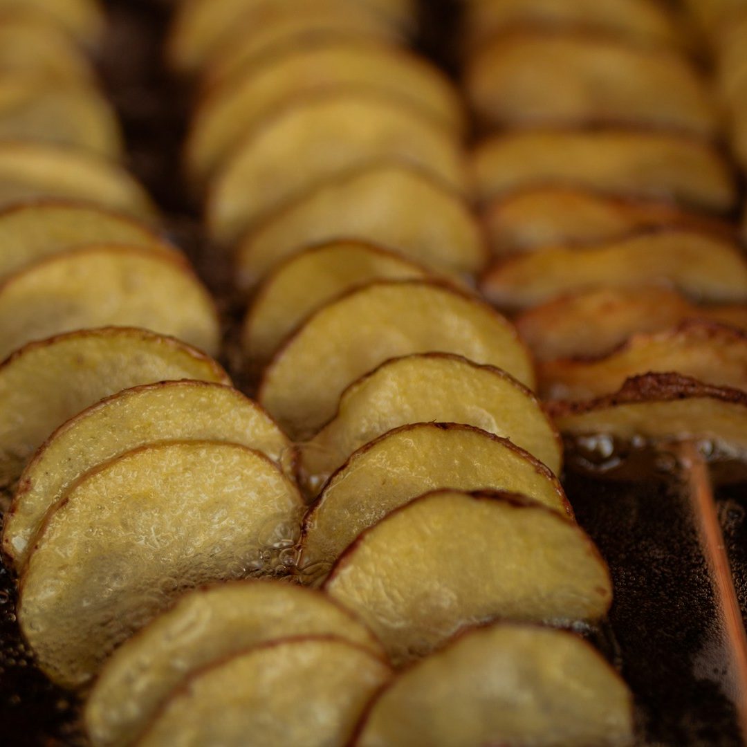 Das Fleisch für unseren Franken-Döhna wird mindestens 24 Stunden in unserer spezial Marinade eingelegt, unsere frisch frittierte Erräpfel-Chips sind handgemacht und unwiderstehlich.